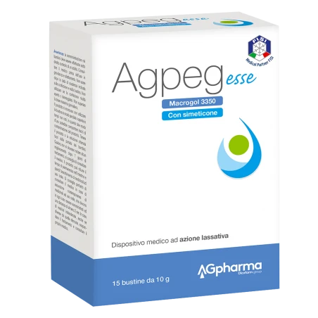 Dispositivo medico indicato per il trattamento sintomatico della stipsi. Favorisce la peristalsi, aiutando ad avere un’adeguata evacuazione intestinale, contrastando così la stitichezza e prevenendo la formazione di fecalomi. Facilita inoltre l’eliminazione dei gas intestinali riducendo la sensazione di gonfiore e distensione addominale. Agpeg esse si presenta in polvere per soluzione orale.
