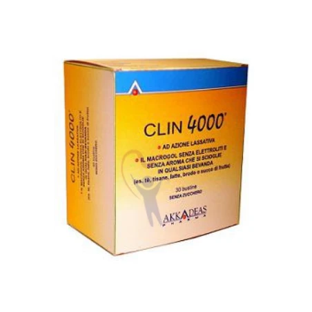 La confezione contiene 30 bustine monouso. Ogni bustina contiene 10 g di Macrogol 4000. Clin 4000 è disponibile anche nella confezione in flacone da 200 g con cucchiaio dosatore.