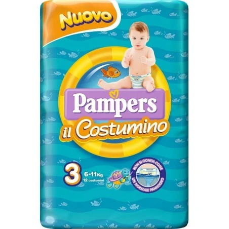 Il Costumino è la linea Pampers che accompagna il bambino anche quando fa il bagno. È confortevole grazie alla sua banda elastica intorno alla vita, riduce il rischio di fuoriuscite e non si gonfia in acqua come un normale pannolino.