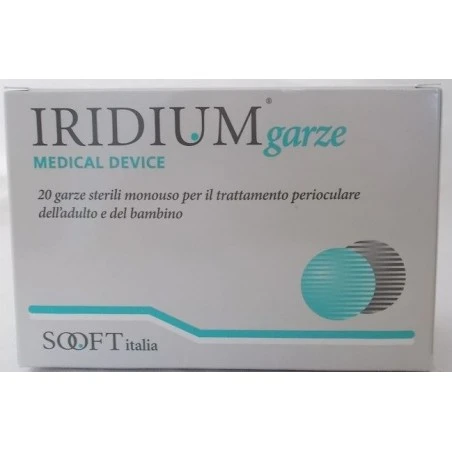 Dispositivo medico CE 0373 sterile. Iridium garze è indicato per la rimozione, dalle palpebre e dalle ciglia, di croste, cispe o secrezioni dovute a fenomeni infiammatori e/o infettivi. Il suo utilizzo è consigliato anche in associazioni a terapie specifiche in caso di patologie oculari di tipo allergico, infiammatorio o infettivo. Trova impiego per il trattamento perioculare prima e dopo interventi di chirurgia oftalmica e in corso di trattamenti per occlusioni del canalicolo lacrimale.