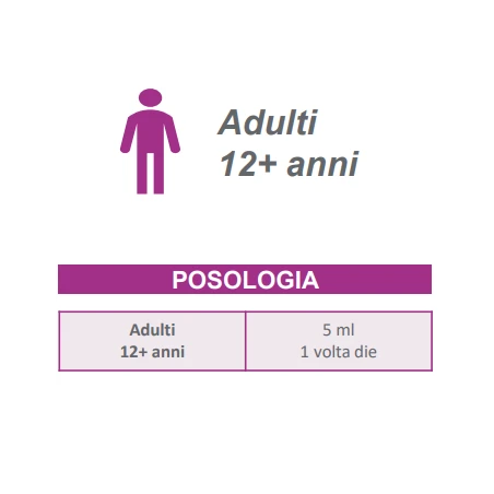 Per adulti e bambini a partire dai 12 anni di età: assumere 5 ml una volta al giorno usando il misurino dosatore incluso.
