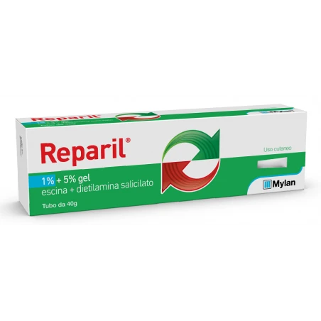 REPARIL 1% + 5% gel 100 g di gel contengono: Principi attivi: Escina: 1 g Dietilamina salicilato: 5 g REPARIL 2% + 5% gel 100 g di gel contengono: Principi attivi: Escina: 2 g Dietilamina salicilato: 5 g Per l’elenco completo degli eccipienti vedere, paragrafo 6.1