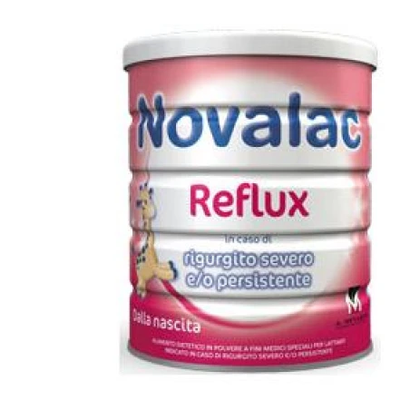 Alimento dietetico destinato a fini medici speciali, completo da un punto di vista nutrizionale in grado di soddisfare le esigenze nutrizionali dei bambini sin dalla nascita in caso di rigurgito severo e/o persistente. La formula di Novalac Reflux è studiata specificamente per i casi di rigurgito neonatale importante. Novalac Reflux contiene un doppio complesso addensante, che unisce alle qualità dell’amido le proprietà delle fibre alimentari naturali. Novalac Reflux limita il rigurgito ed ha una composizione specifica in sostanze nutritive che aiuta a facilitare la buona digestione del bambino. Sotto controllo medico, Novalac Reflux può costituire l’unica fonte di alimentazione del bambino fino all’età di 6 mesi. Successivamente, e su consiglio del medico, Novalac Reflux si integrerà nell’alimentazione diversificata del bambino. Novalac Reflux deve essere usato unicamente per neonati che presentano rigurgito severo e/o persistente.