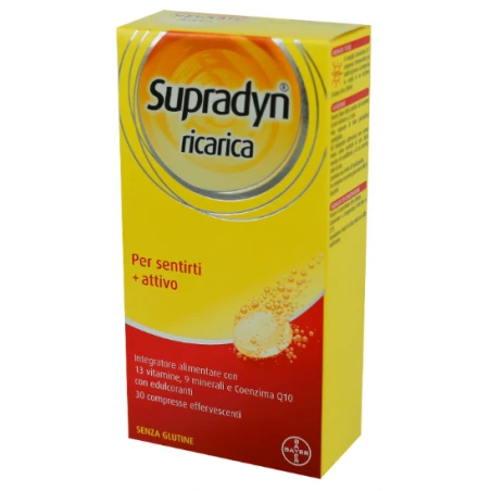 Supradyn è un integratore alimentare di 13 vitamine e 9 minerali con Coenzima Q10 specificamente formulato per assicurare un adeguato apporto giornaliero di micronutrienti nei casi di aumentato fabbisogno fisiologico o di ridotto apporto con la normale dieta.